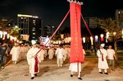(뉴스폼) 정조대왕의 깊은 효심과 애민 정신을 기리는 ‘2025 정조대왕효문화제·정조대왕능행차’가 27일 정조효공원과 융릉 일원에서 막을 올렸다. 정조대왕효문화제는 지난 2002년부터 이어져 온 화성특례시 대표 역사문화축제로, 역사적 의의와 현대적 감각을 결합한 다채로운 프로그램이 시민과 관광객을 맞이하고 있다. 첫날인 27일에는 1789년 아버지 사도세자의 묘를 조선 최고의 명당, 화성 현륭원으로 옮기는 과정을 400여 명의 시민들과 함께 재현한 야간행렬 ‘현륭원 천원(遷園)’이 선소리와 함께 장엄한 장면을 연출하며 관람객들에게 큰 감동을 안겼다. 개막식에 앞서 정명근 화성특례시장이 26명의 효행자에게 ‘효행상’을 시상하며 정조대왕의 숭고한 효심을 기렸다. 효행자에게는 개막식 좌석 앞자리를 배정해 정조대왕이 ‘양로연’에서 노인들을 위해 왕의 앞자리를 내어주었다는 일화를 따르기도 했다. 개막식에서는 재궁(왕실 장례용 관)을 묏자리에 모시는 ‘하현궁 퍼포먼스’에서는 정조대왕이 어머니 혜경궁 홍씨의 회갑잔치 날 효도와 감사의 의미를 담아 복사꽃을 드렸던 것처럼 주요 내빈들이 복사꽃을 재궁 위에 헌화하는 퍼포먼스를 펼쳤다. 이어, 횃불로 죽산마에 불을 붙이는 ‘죽